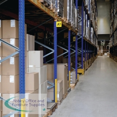 The Durable Magnetic Aisle Sign provides a repositionable and highly visible warehouse labelling solution. Made from transparent PET hard film, it features a strong magnetic strip that securely attaches to metal warehouse shelving, allowing for quick relocation as stock locations change. The right-angled attachment enhances visibility, while the dust-protected insert window ensures printed labels remain legible. The thumb punch opening allows for quick and easy label changes, making it ideal for aisle numbering, stock labelling, and warehouse navigation. Labels can be created easily using free DURAPRINT software for professional-quality warehouse labelling.