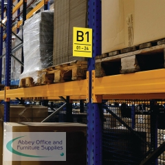The Durable Magnetic Aisle Sign provides a repositionable and highly visible warehouse labelling solution. Made from transparent PET hard film, it features a strong magnetic strip that securely attaches to metal warehouse shelving, allowing for quick relocation as stock locations change. The right-angled attachment enhances visibility, while the dust-protected insert window ensures printed labels remain legible. The thumb punch opening allows for quick and easy label changes, making it ideal for aisle numbering, stock labelling, and warehouse navigation. Labels can be created easily using free DURAPRINT software for professional-quality warehouse labelling.