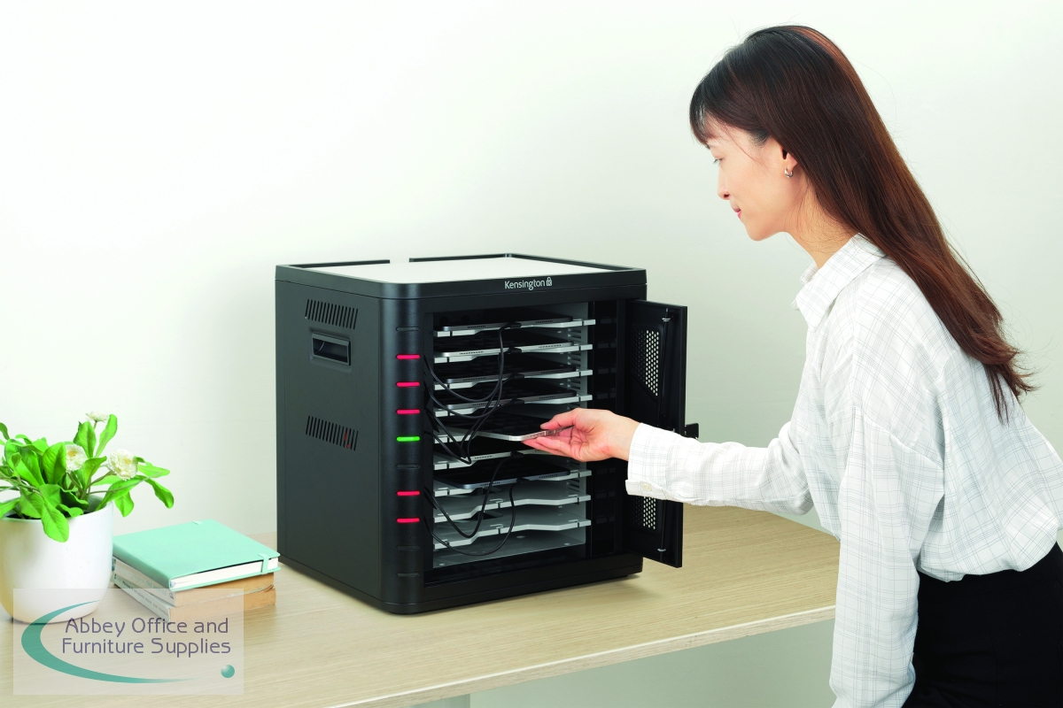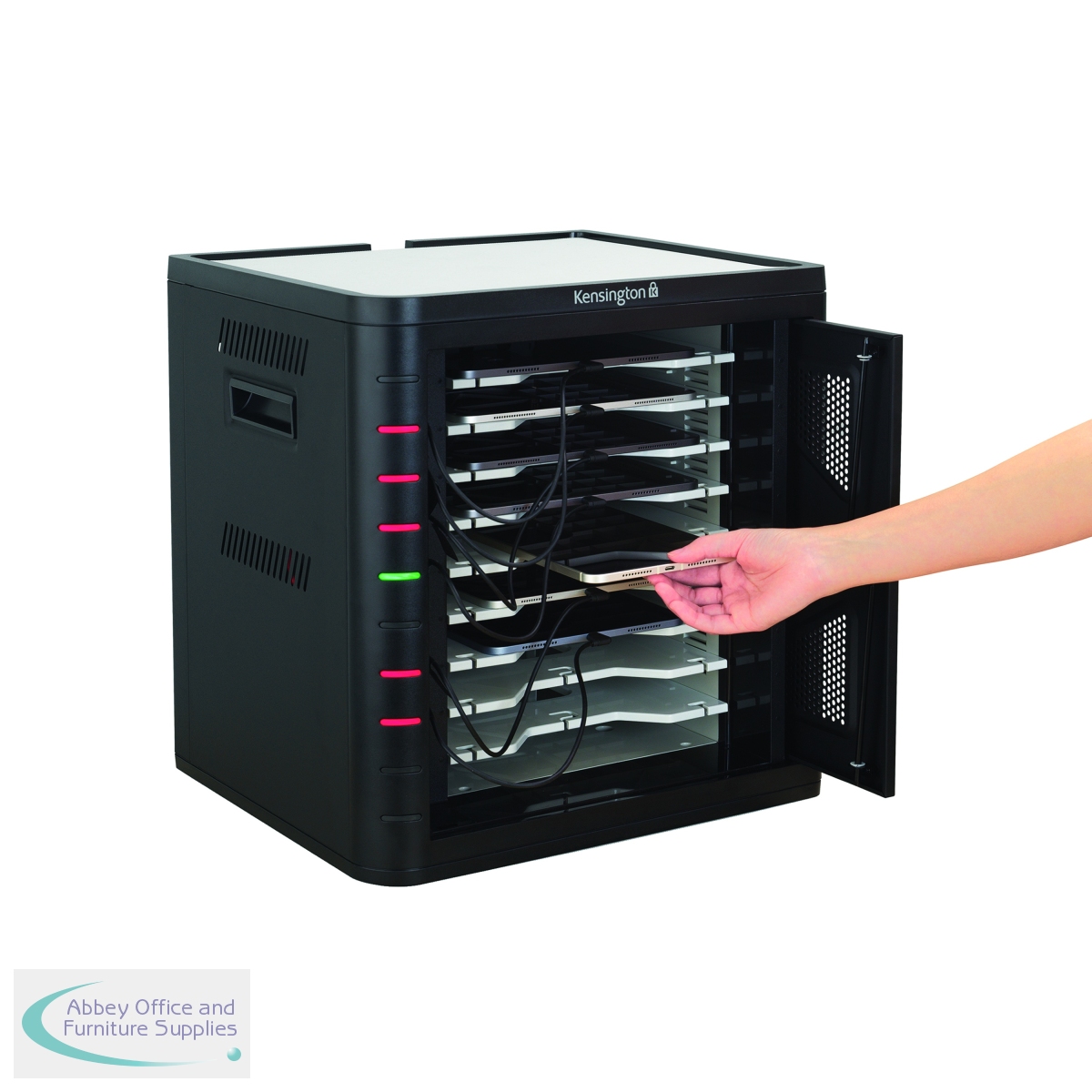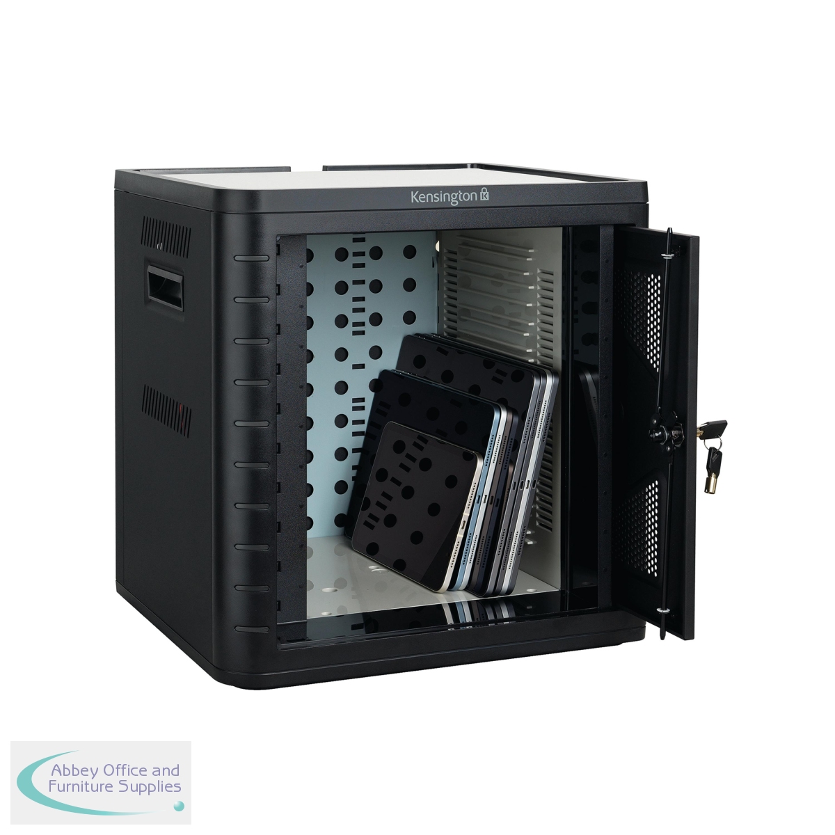 The Kensington USB-C Charging Cabinet offers a secure and efficient solution for charging up to 10 compatible devices simultaneously. Delivering up to 18W to each device via fast PD 3.0 technology, it minimises downtime and supports the latest tablets, smartphones, headphones and portable gaming consoles. Its robust, lockable design safeguards devices against theft and damage, while its compact footprint optimises space, making it ideal for educational, corporate and healthcare settings. An integrated smart cooling system activates during charging to prevent overheating. With USB-C compatibility, it future-proofs device management for the latest technology. Organised cable management and LED indicators enhance usability, making it a reliable solution for multi-user settings. Includes a 1-year limited warranty.