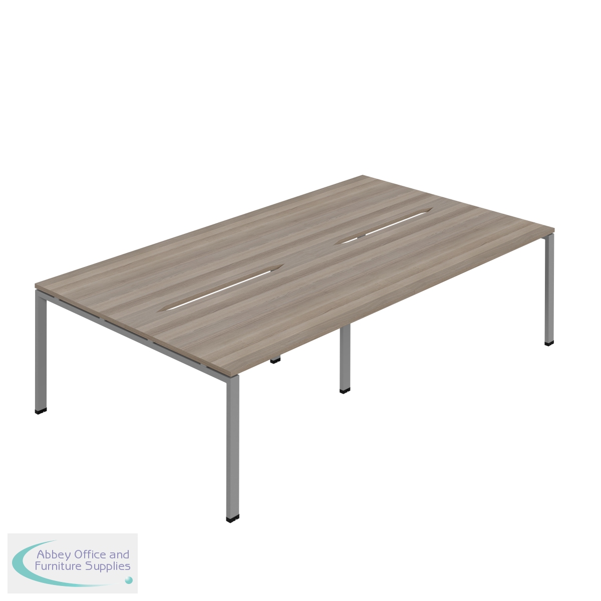 KF800490 - Jemini Four Person Back-to-Back Bench Desk 1200x800mm Grey Oak/Silver (Set of 2) KF800490
