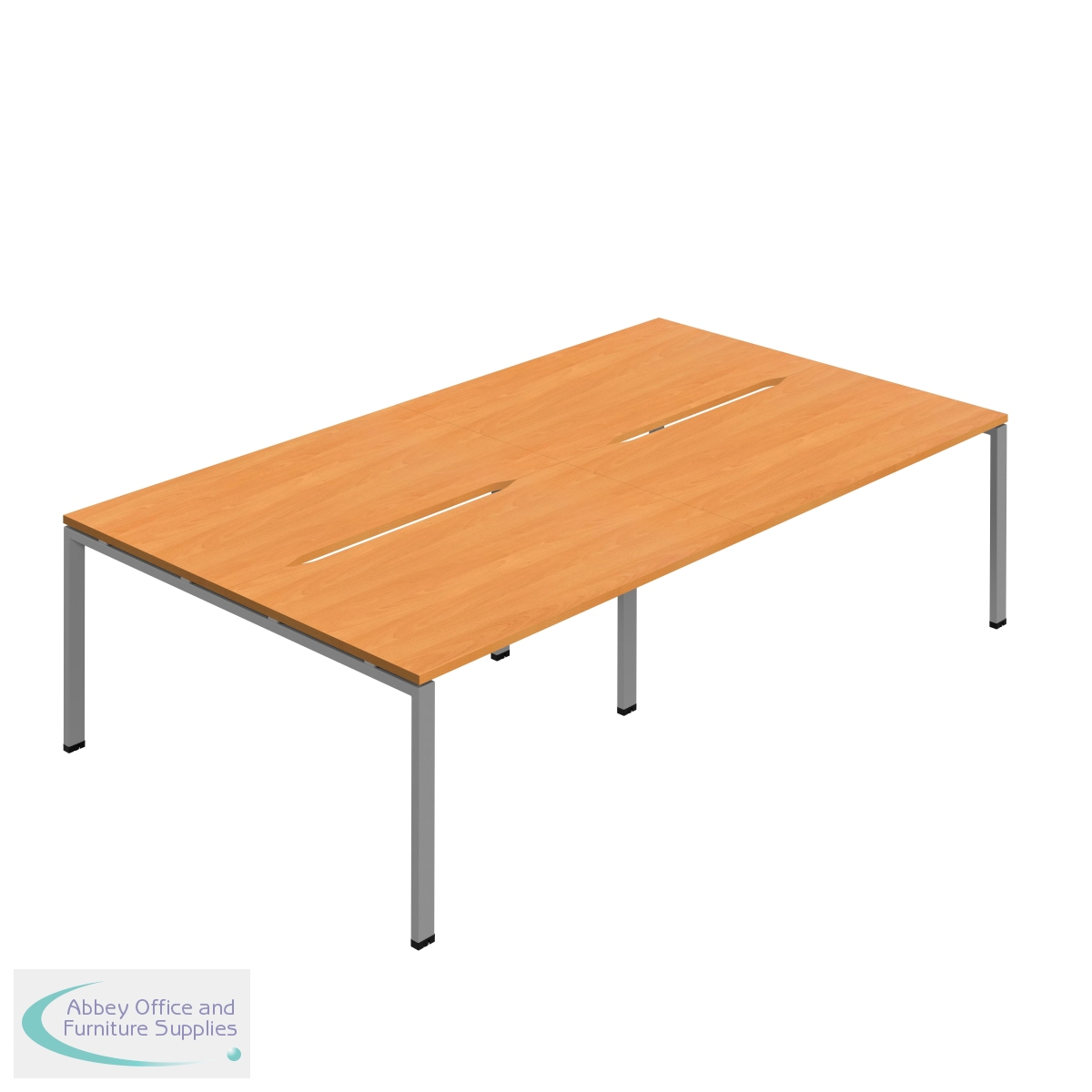 KF800516 - Jemini Four Person Back-to-Back Bench Desk 1600x800mm Beech/Silver (Set of 2) KF800516