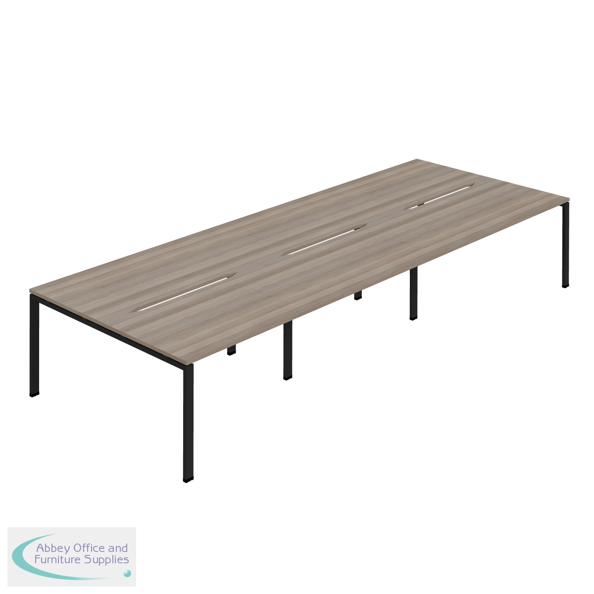 KF800539 - Jemini Six Person Back-to-Back Bench Desk 1200x800mm Grey Oak/Black (Set of 3) KF800539