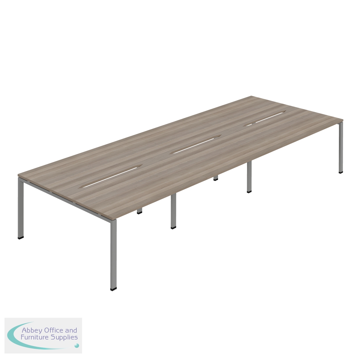 KF800556 - Jemini Six Person Back-to-Back Bench Desk 1400x800mm Grey Oak/Silver (Set of 3) KF800556