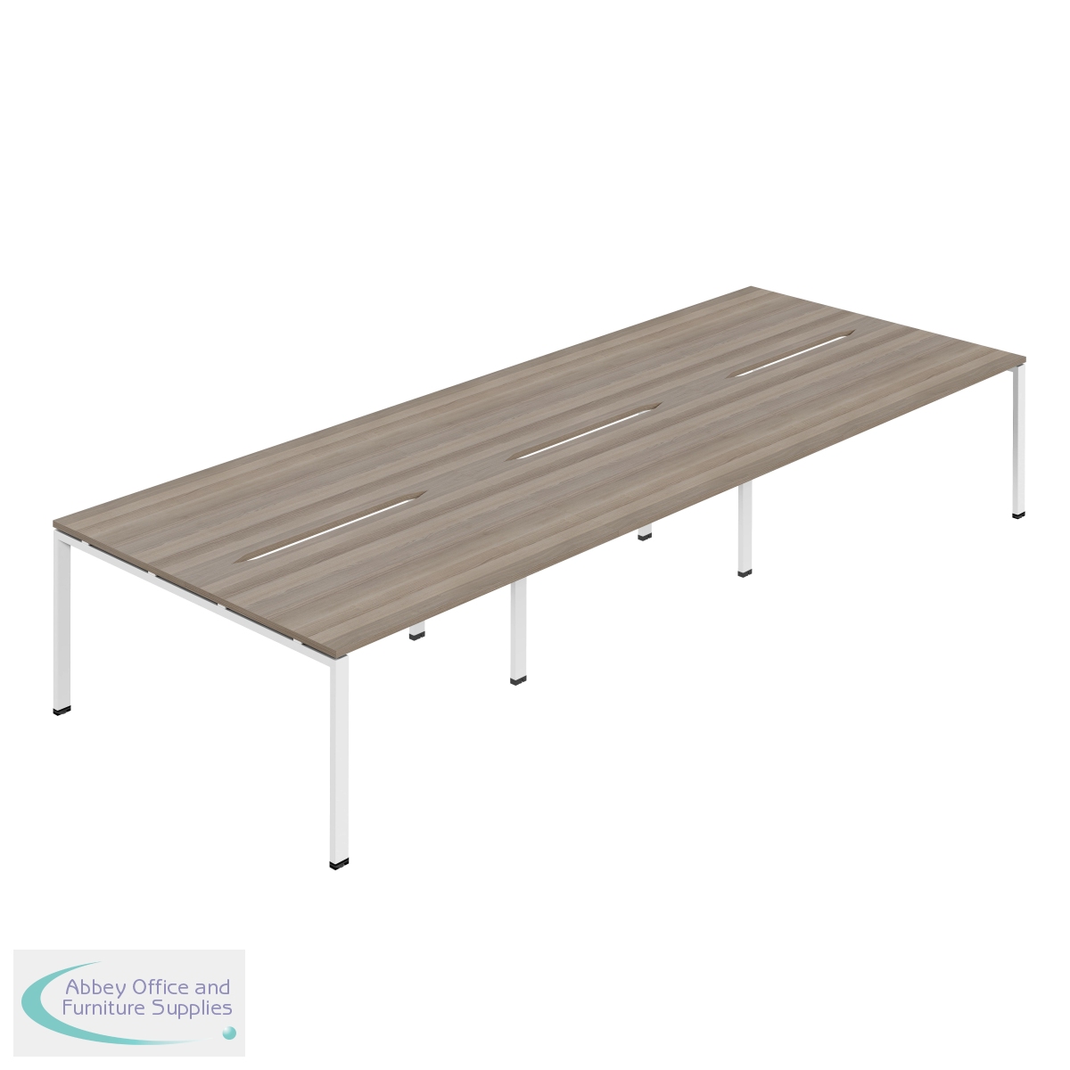 KF800575 - Jemini Six Person Back-to-Back Bench Desk 1600x800mm Grey Oak/White (Set of 3) KF800575