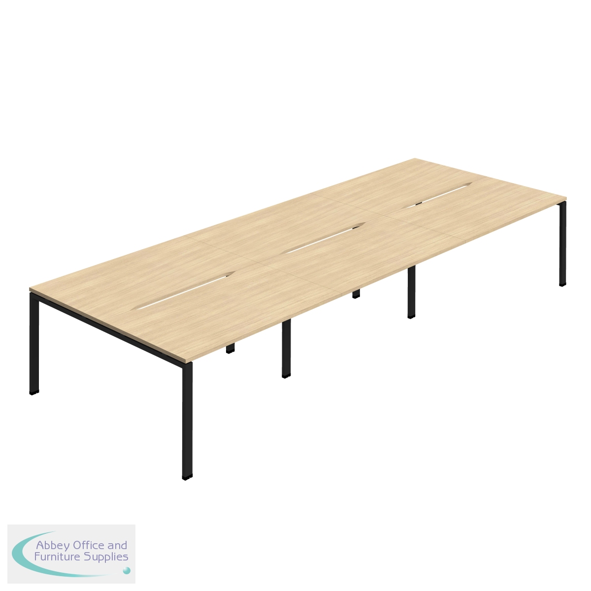 KF800576 - Jemini Six Person Back-to-Back Bench Desk 1600x800mm Nova Oak/Black (Set of 3) KF800576