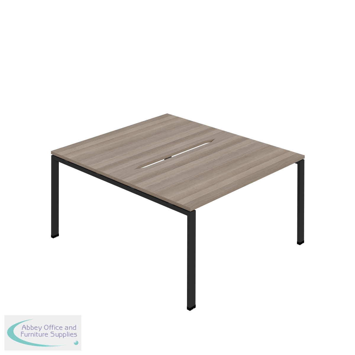 KF800589 - Jemini Two Person Back-to-Back Bench Desk 1200x800mm Grey Oak/Black KF800589