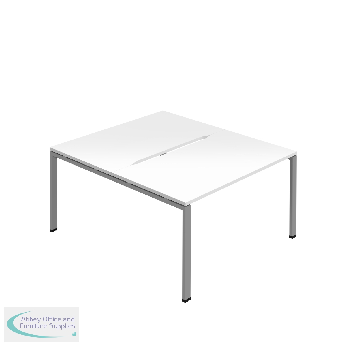 KF800613 - Jemini Two Person Back-to-Back Bench Desk 1400x800mm White/Silver KF800613