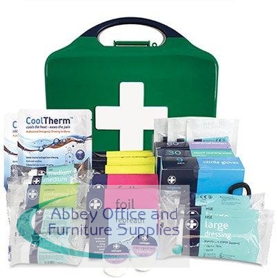 First aid kits play a critical role in lessening the severity of accidents in the workplace. If a workplace is without a first aid kit, small injuries could become a much larger problem which could not only cause short-term issues but potentially long-term health problems for the affected employee, thereby impacting their health, quality of life, quality of work and workplace satisfaction. Alternatively, simply having a first aid kit on hand can help you and your colleagues avoid these issues. Supplied in a practical, organised Aura box, this Reliance Medical British-standard Aura workplace first aid kit has been created specifically to ensure employees have all the first aid necessities a modern work environment requires. Packed full of bandages, dressings and multiple other products, this first aid kit is certainly convenient and versatile.