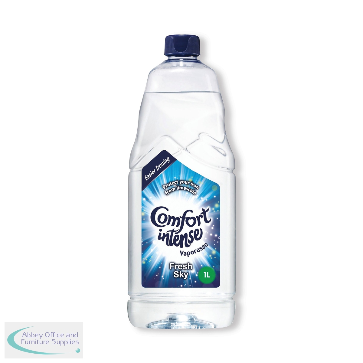 Offering limescale protection and easy ironing, this Comfort Vaporesse Liquid with Fresh Sky scent is an ironing water which helps you glide effortlessly over creases for smooth ironing. Laundry is left with the uplifting fragrance of Fresh Sky and the formula ensures that laundry is comfortable to wear with the anti-static formula. Simple to use, the liquid is poured straight into the iron's water reservoir. Supplied in a 1 litre bottle.