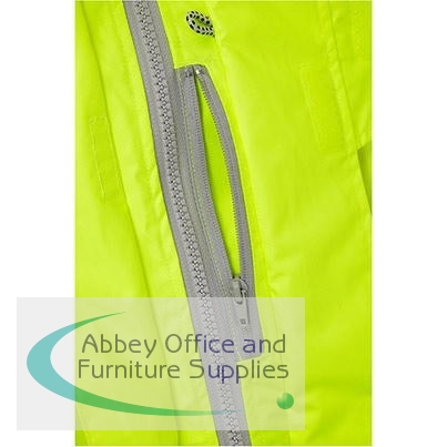 This waterproof hi-vis jacket boasts a wealth of practical features as well as offering waterproofing thanks to its polyurethane and polyester outer fabric. There's a host of handy pockets available, with some specially designed to accommodate pens, mobile phones and even A4 documents. Breathability is assured too, thanks to inbuilt ventilation for both underarms, while the inner zip also allows compatible fleeces, bodywarmers and softshell to be attached to act as an extra lining. A packaway detachable hood is also included for extra protection against the elements when needed.