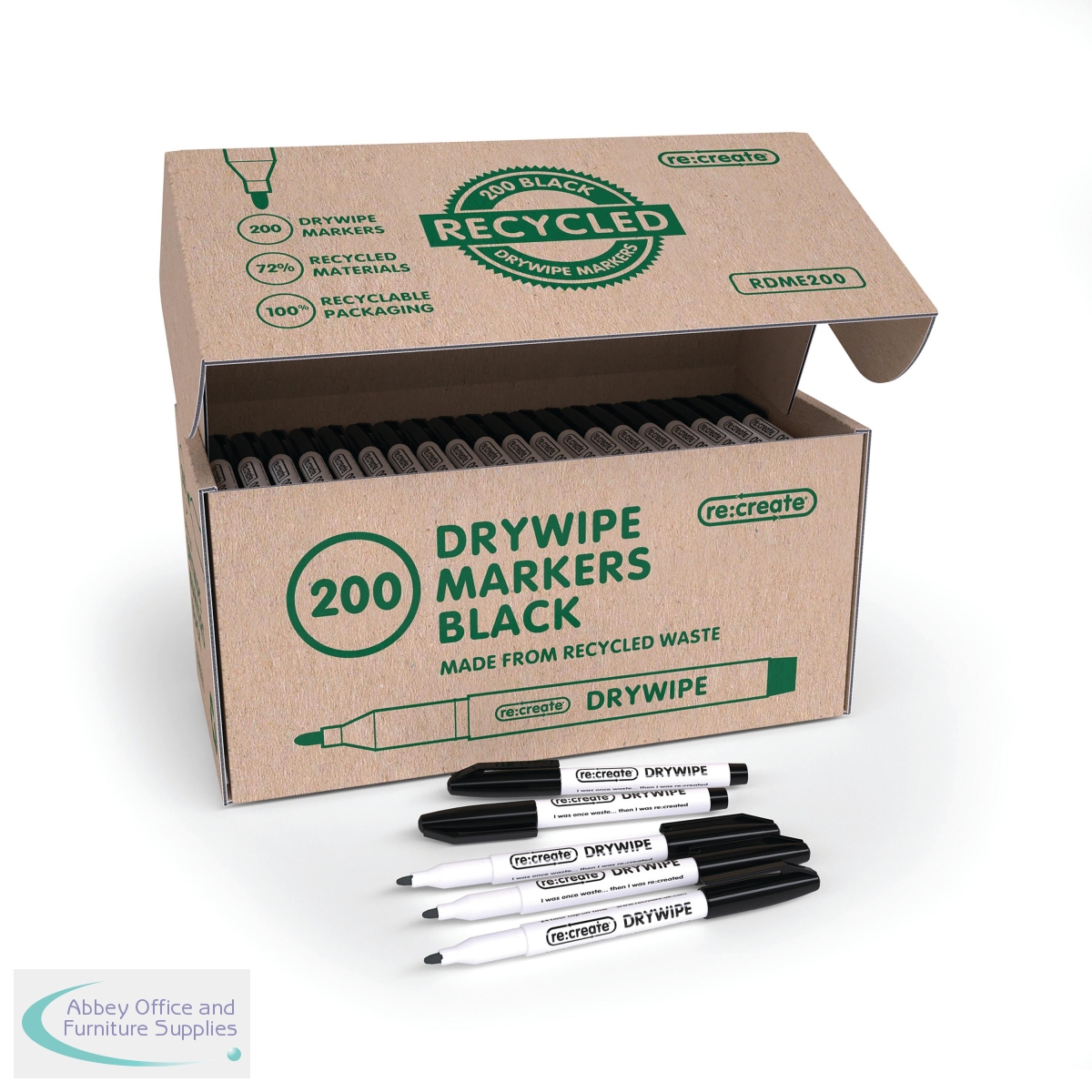 EG63489 - Re:create Recycled Whiteboard Markers Bullet Tip Black (Pack of 200) RDME200