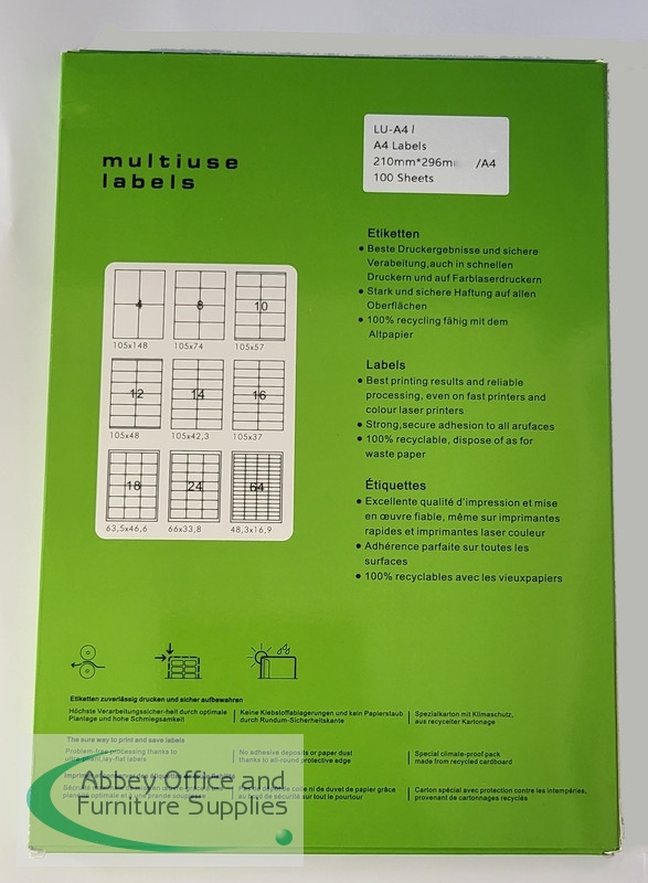 The package contains 100 sheets, ensuring you have an ample supply of labels for various projects. Each sheet is sized perfectly to fit standard A4 paper, making it compatible with most printers.