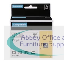 Compatible Dymo A18444 IND Vinyl Labels(5.5m) Rhino Tape, 12mm Black on White