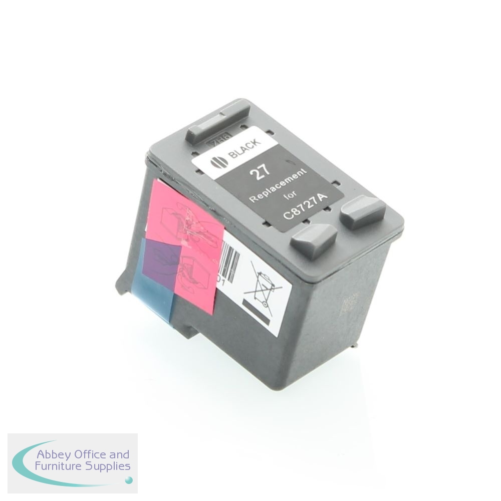 Compatible HP 27 Black C8727AE. For the following machines: Deskjet 3320, Deskjet 3325, Deskjet 3420, Deskjet 3425, Deskjet 3520, Deskjet 3535, Deskjet 3550, Deskjet 3645, Deskjet 3650, Deskjet 3745, Deskjet 3840, Deskjet 3845, Deskjet 450 mobile, Fax 1240, Officejet 4105, Officejet 4105Z, Officejet 4110, Officejet 4200, Officejet 4211, Officejet 4215, Officejet 4219, Officejet 4252, Officejet 4255, PSC 1100, PSC 1200, PSC 1210, PSC 1210XI, PSC 1310, PSC 1311, PSC 1317, PSC 2105, PSC 2108, PSC 2110, PSC 2115, PSC 2210. With a Yield of 190