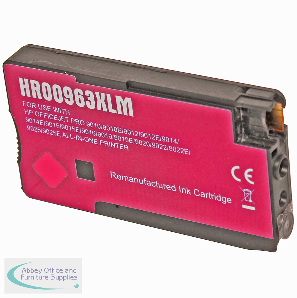 Compatible HP 963XL Magenta Ink Cartridge. For the following machines: HP OfficeJet Pro 9010, HP OfficeJet Pro 9012, HP OfficeJet Pro 9013, HP OfficeJet Pro 9014, HP OfficeJet Pro 9015, HP OfficeJet Pro 9016, HP OfficeJet Pro 9018, HP OfficeJet Pro 9019, HP OfficeJet Pro 9020, HP OfficeJet Pro 9022, HP OfficeJet Pro 9023, HP OfficeJet Pro 9025, HP OfficeJet Pro 9026, HP OfficeJet Pro 9028. With a Yield of 25.5ml