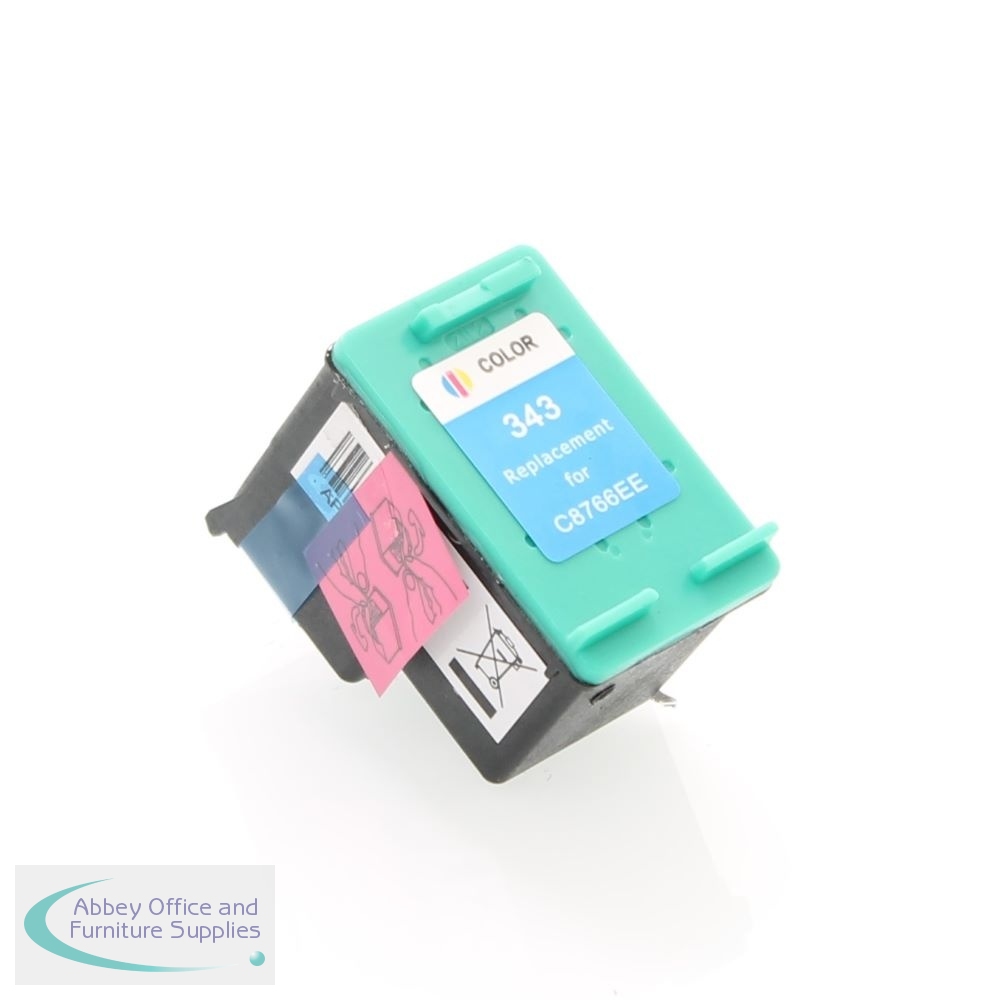 Compatible HP 343 Colour C8766EE. For the following machines: Deskjet 460, 5740, 5745, 5940, 6520, 6540, 6620, 6840, 6940, 9800, 6980, D4160, Officejet 6205, 6210, 6215, 7210, 7310, 7410, K7100, H470, 100, 150, Photosmart 325, 375, 385, 422, 428, 475, 2570, 2575, 2610, 2710, 8050, 8150, 8450, 8750, D5160, ProB8350, PSC1600, 1610, 2350, 2355. With a Yield of 450