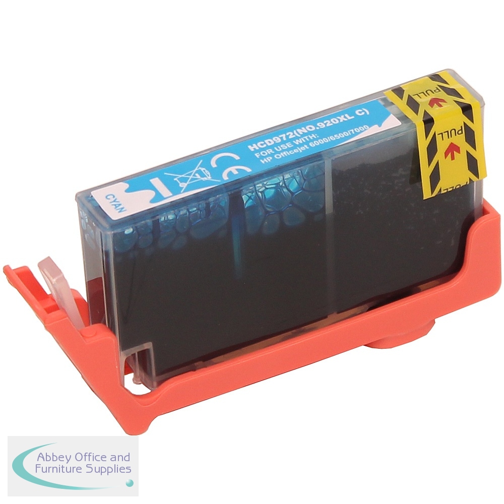 Compatible HP 920XL Cyan CD972AE. For the following machines: Officejet 6000, Officejet 6500, Officejet 6500A, Officejet 6500A Plus, Officejet 7000, Officejet 7500A. With a Yield of 700