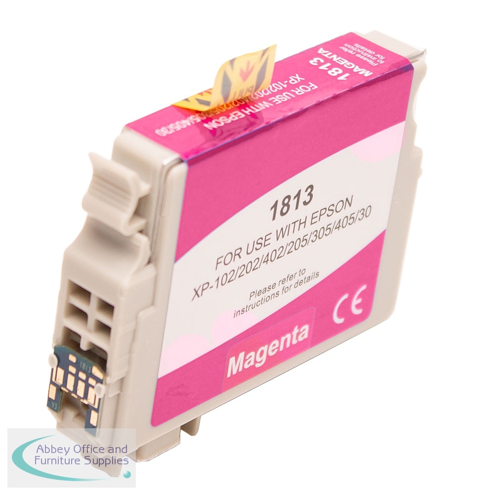 Compatible Epson T1813 18XL Magenta T18134010. For the following machines: Expression Home XP-102, Expression Home XP-202, Expression Home XP-205, Expression Home XP-30, Expression Home XP-305, Expression Home XP-405. With a Yield of 450