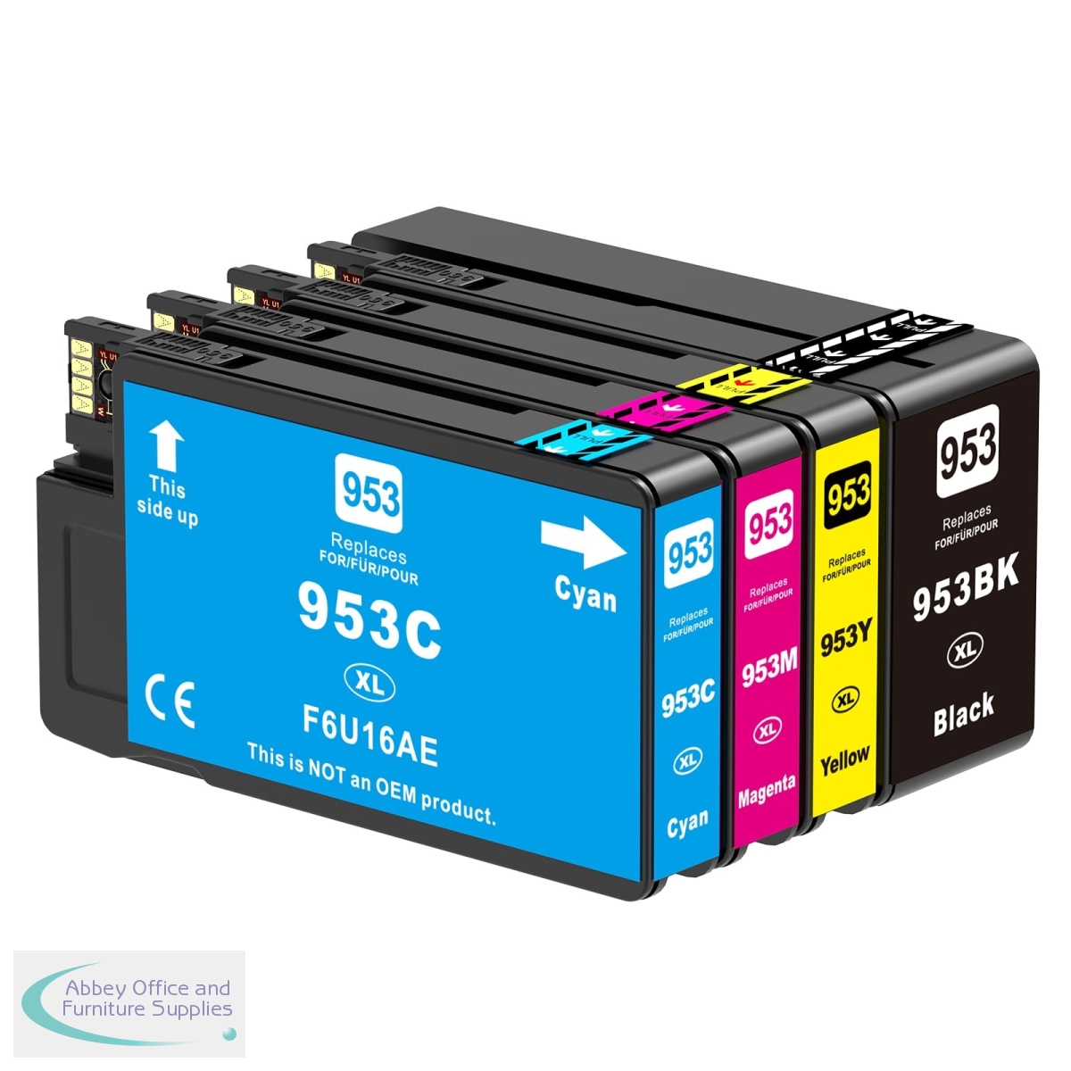 Compatible HP 953XL Multi-pack, which contains 1 x Black Ink Cartridge (76ml) and 3 x Colour Ink Cartridges (27.5ml). For the following machines: HP OfficeJet Pro 7720, HP OfficeJet Pro 7730, HP OfficeJet Pro 7740, HP OfficeJet Pro 8210, HP OfficeJet Pro 8218, HP OfficeJet Pro 8710, HP OfficeJet Pro 8715, HP OfficeJet Pro 8718, HP OfficeJet Pro 8720, HP OfficeJet Pro 8725, HP OfficeJet Pro 8728, HP OfficeJet Pro 8730, HP OfficeJet Pro 8740