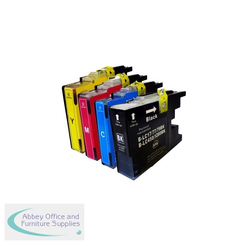 Compatible Brother LC1240 / LC1280 Multi-Pack. For the following machines: DCP-J4120DW, MFC-J4420DW, MFC-J4620DW, MFC-J4625DW, MFC-J5320DW, MFC-J5620DW, MFC-J5625DW, MFC-J5720DW. With a Yield of 1*30ml B;ack + 3*19ml Colours