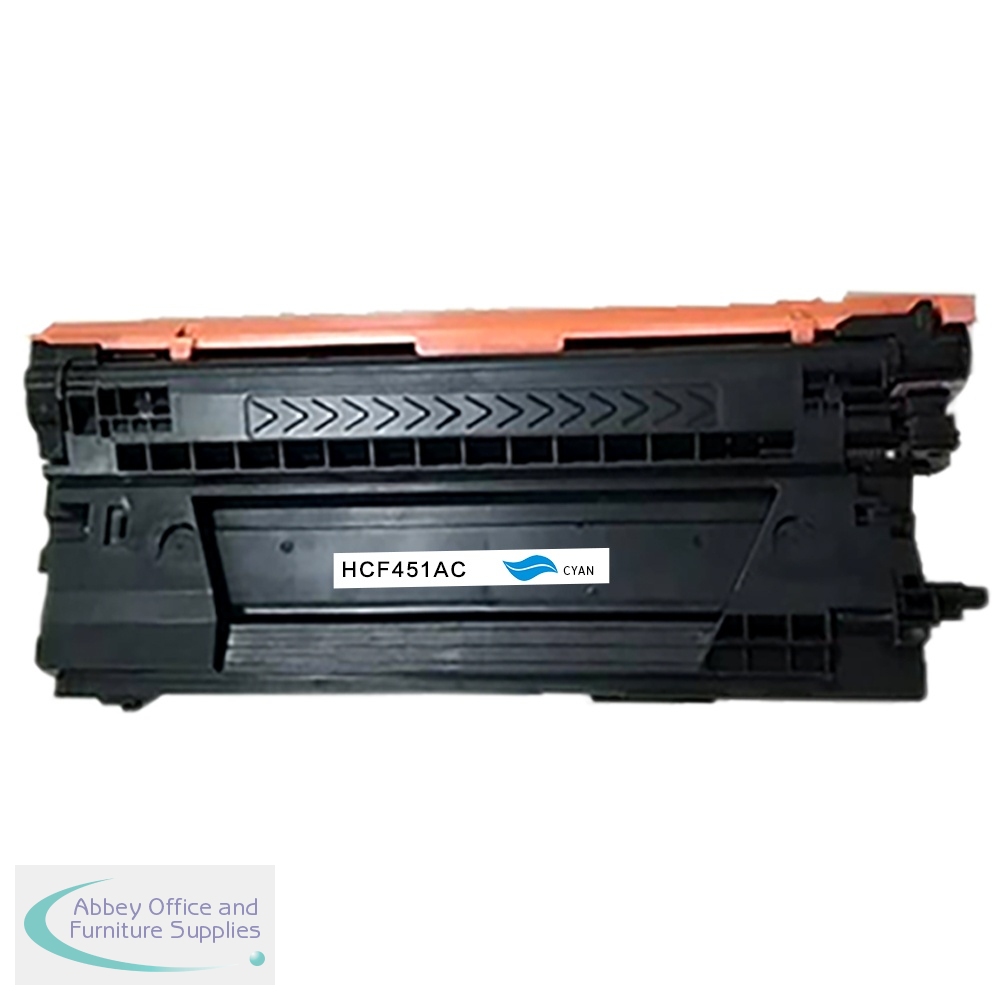 Compatible HP CF451A 655A Cyan Toner. For the following machines: HP Color LaserJet Enterprise Flow MFP M681z, HP Color LaserJet Enterprise Flow MFP M682z, HP Color LaserJet Enterprise M652dn, HP Color LaserJet Enterprise M652n, HP Color LaserJet Enterprise M653dn, HP Color LaserJet Enterprise M653x, HP Color LaserJet Enterprise MFP M681dh, HP Color LaserJet Enterprise MFP M681f. Yield 10,500 pages