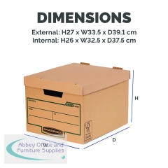 Ideal for long term and archival storage, this environmentally friendly Bankers Box is made from 100% recycled board. Double layers of board on the end panels and base provide additional support in, with fold back handles for comfortable carrying. Stackable up to 3 high, this standard storage box measures W375 x D325 x H260mm (internal). This pack contains 10 brown storage boxes.