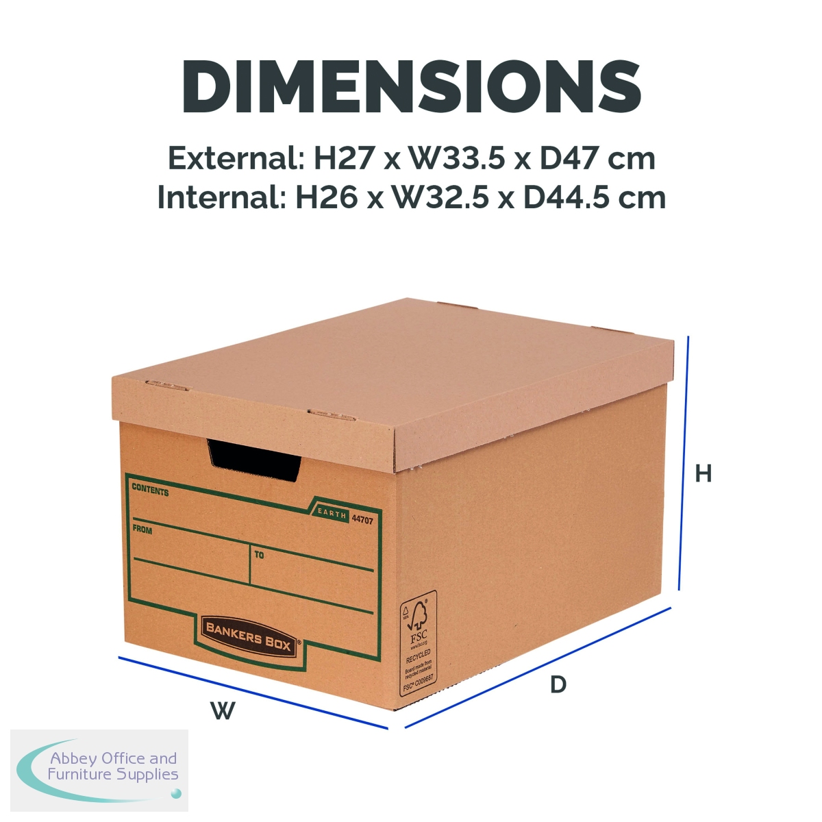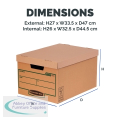 Ideal for long term and archival storage, this environmentally friendly Fellowes Bankers Box is made from 100% recycled board. Double layers of board on the end panels and base provide additional support in, with fold back handles for comfortable carrying. Stackable up to 3 high, this large storage box measures W325 x D445 x H260mm. This pack contains 10 brown storage boxes.