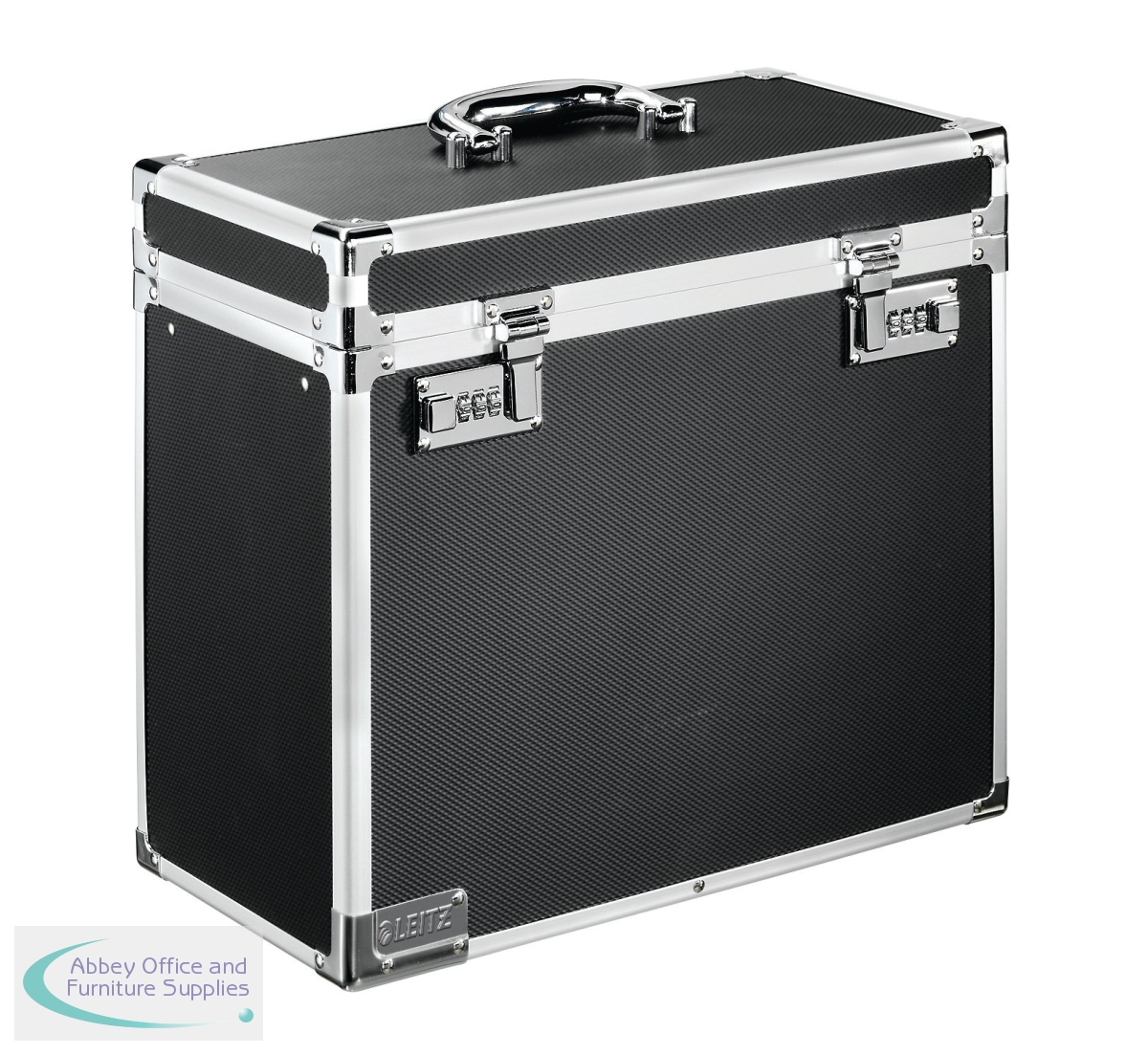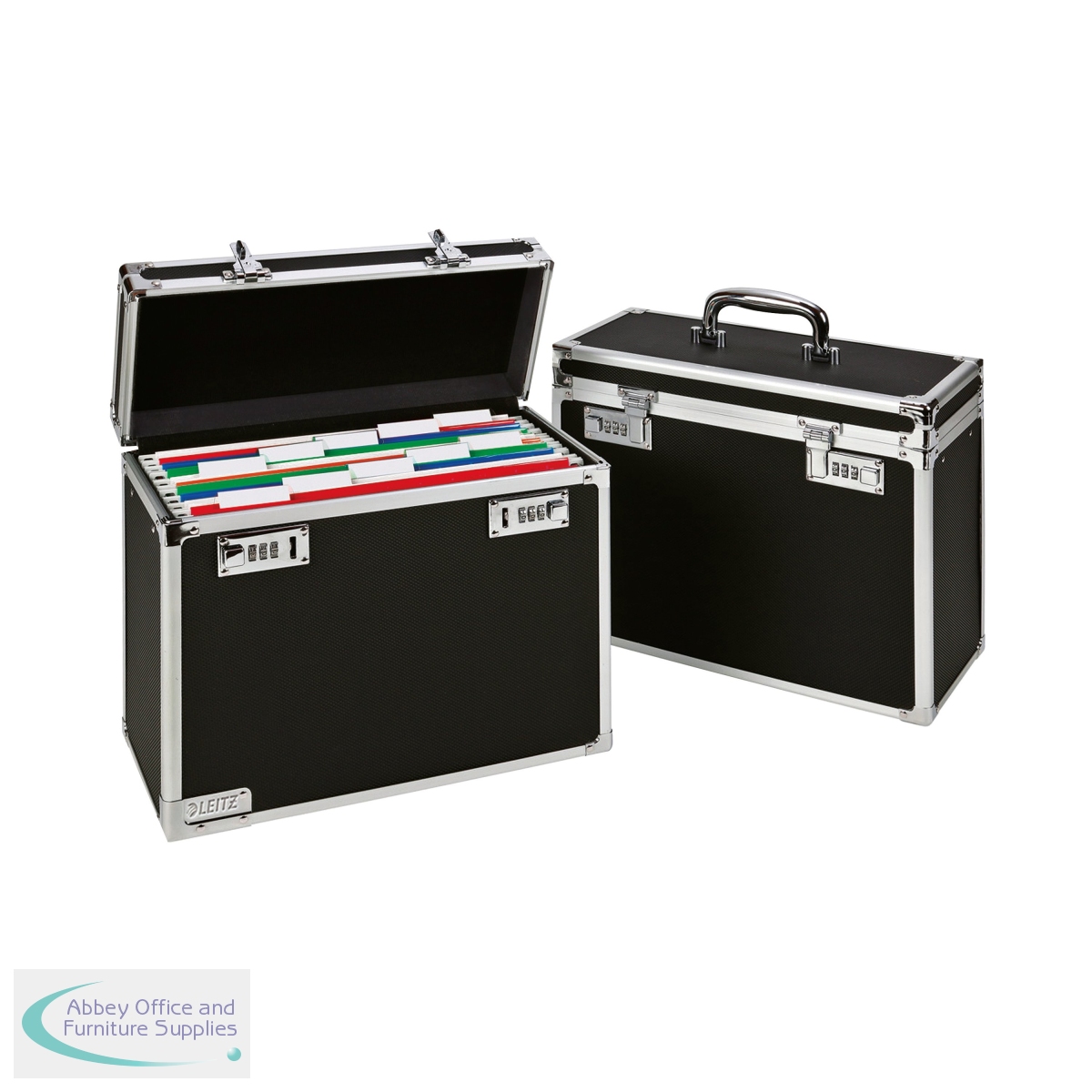 This Leitz mobile filing case is ideal for document storage at home, in your car or on the go. The case contains rails for storing up to 15 foolscap suspension files and their contents. The strong lid features a six-digit combination lock for secure closure. The case also features a convenient, metal carrying handle.