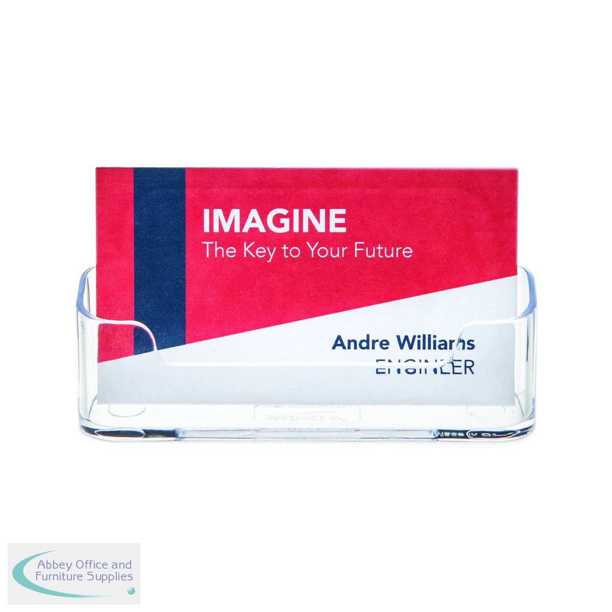 Introducing the Announce Single Pocket Crystal Clear Countertop Business Card Holder for Desk. The ultimate solution for organizing and displaying business cards in style.