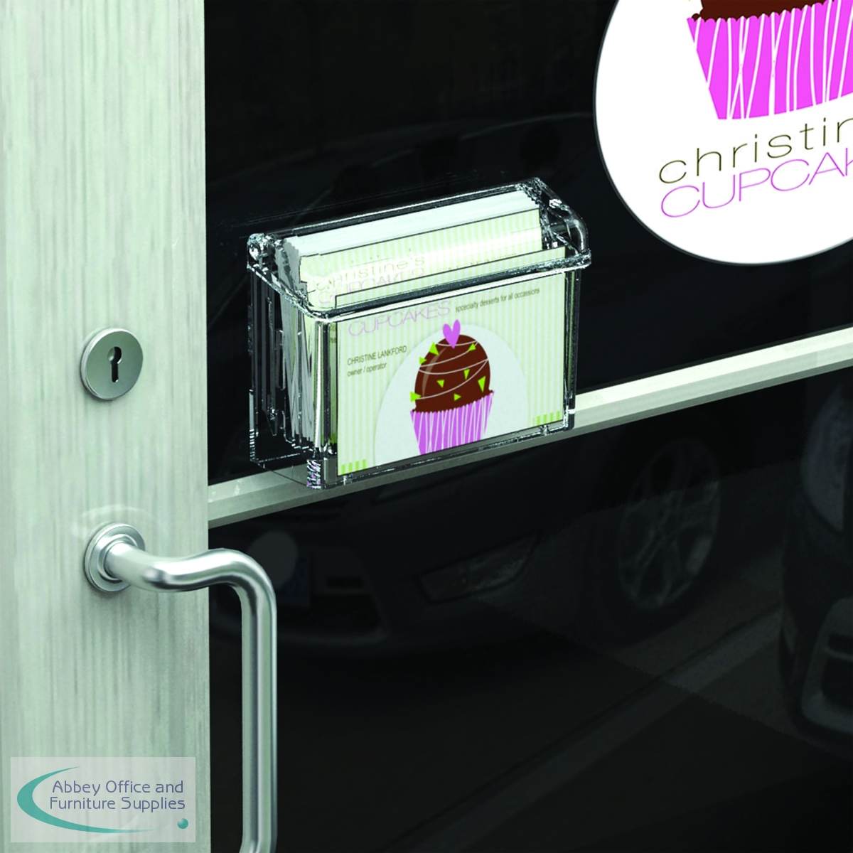 Introducing the Announce Wall Mounted 'Grab a Card' Business Card Holder in Crystal Clear. Ideal for mounting on the exterior of business premises.