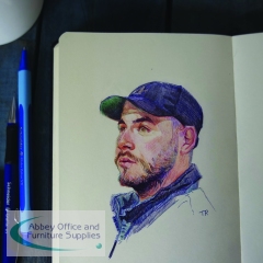 Ballpoint pen with Viscoglide technology for extraordinarily smooth and gliding writing. Eco-friendly and resource-saving pen body made of 83% recycled plastic. The pen has an Extra Broad line width (XB) with a writing colour of blue, it is waterproof according to ink standard ISO 12757-2. The ink dries quickly even on smooth paper, and is smudge proof when highlighting it later on. Ideally suited to drawing and painting projects because the special ink will not run even on absorbent paper. A generously rubberised three-sided barrel is designed for relaxed writing without hand fatigue. It does not roll on the desk and its slim shape fits perfectly into school children's pencil cases or into desk pen drawers. The cap fits neatly on either end of pen. The wear-resistant stainless steel tip guarantees that the large ink supply can be fully used and does not smear