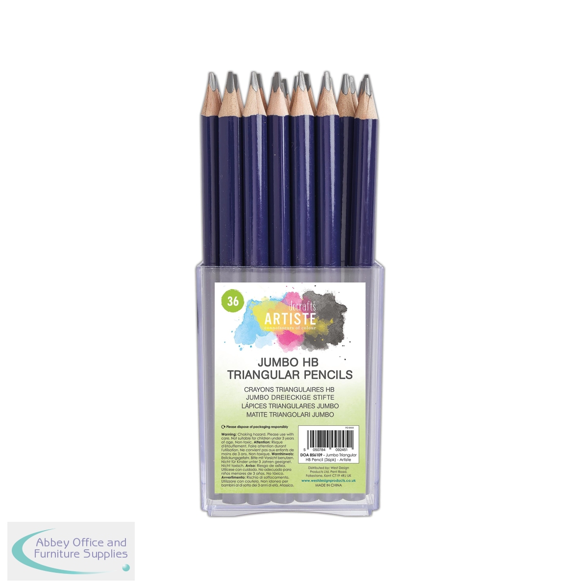 WD09245 - Artiste Jumbo Triangular HB Pencil Tub Charcoal (Pack of 36) DOA 856109