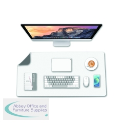 FS677242 - 5 Star Double Sided Heat-Resistant Desk Mat 800x400mm Faux Leather Grey/White