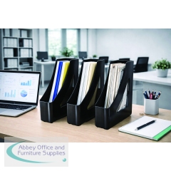 Introducing the 5 Star Set of Magazine Files - the perfect solution for keeping your magazines, catalogues, and papers organized in style. These magazine files add a touch of sophistication to any workspace.