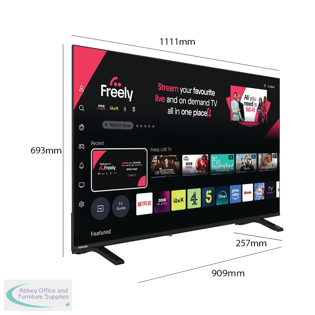 Live and breathe the on-screen action with a Toshiba 4K UHD TV. Bringing you life-like picture clarity. TRU Resolution upscales non-4K content for a refined, immersive experience and TRU Flow, which reduces image judder, even during rapid cuts and fast-moving scenes. Dive into ultra-vivid 4K Dolby Vision content with crystal-clear Dolby Audio processing, making the sound clearer, with sharper dialogue and richer detail. Stream all your favourite live and on demand TV with Freely - no dish, no box, no aerial - all you need is Wi-Fi. VIDAA TV integrates live tv and streaming channels seamlessly, offering a vast array of content. Effortlessly navigate with your preferred voice assistant—Alexa, Google Assistant, or VIDAA Voice—for intuitive control and access to endless entertainment through VIDAA's universal search feature.