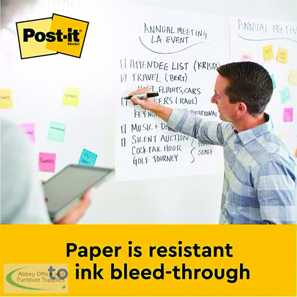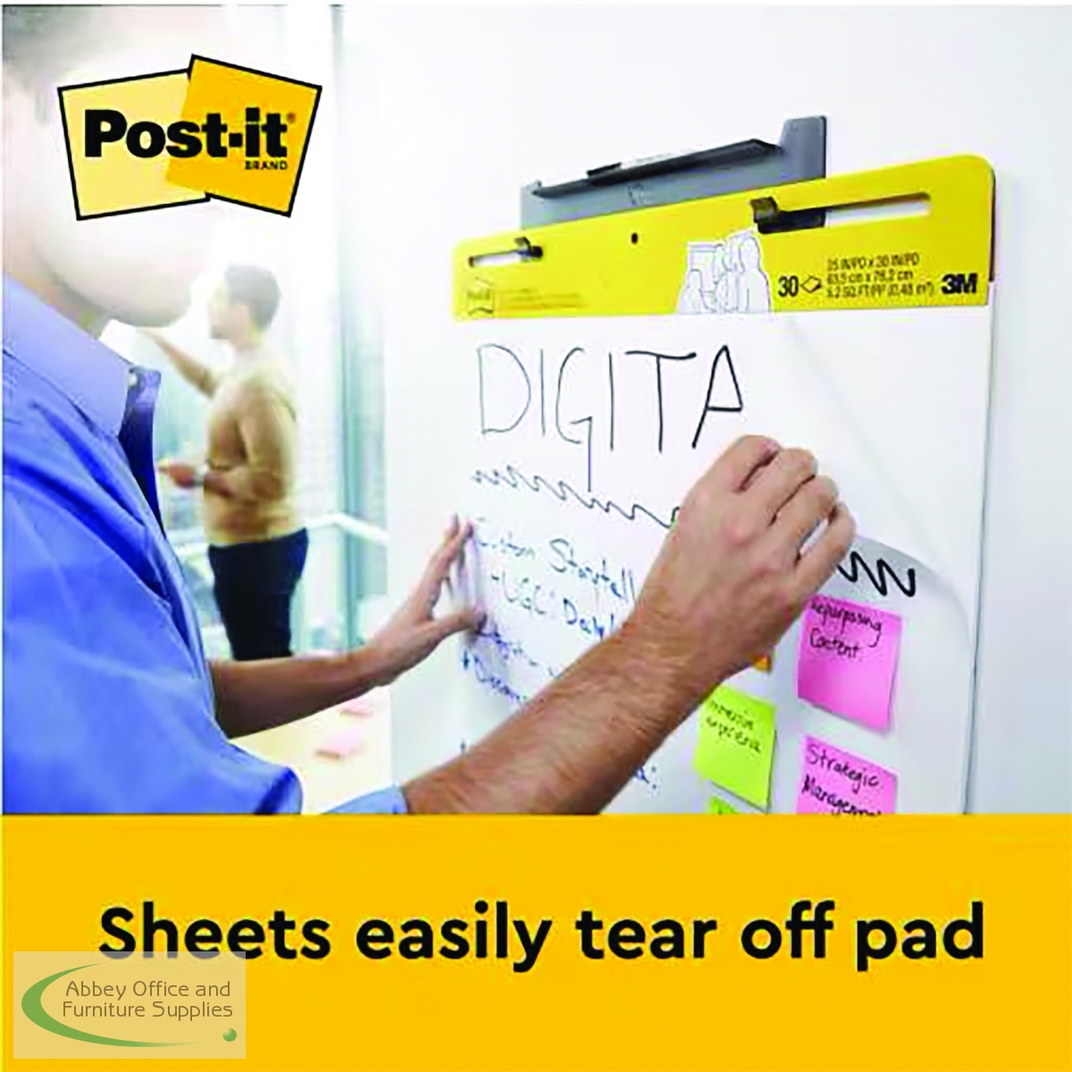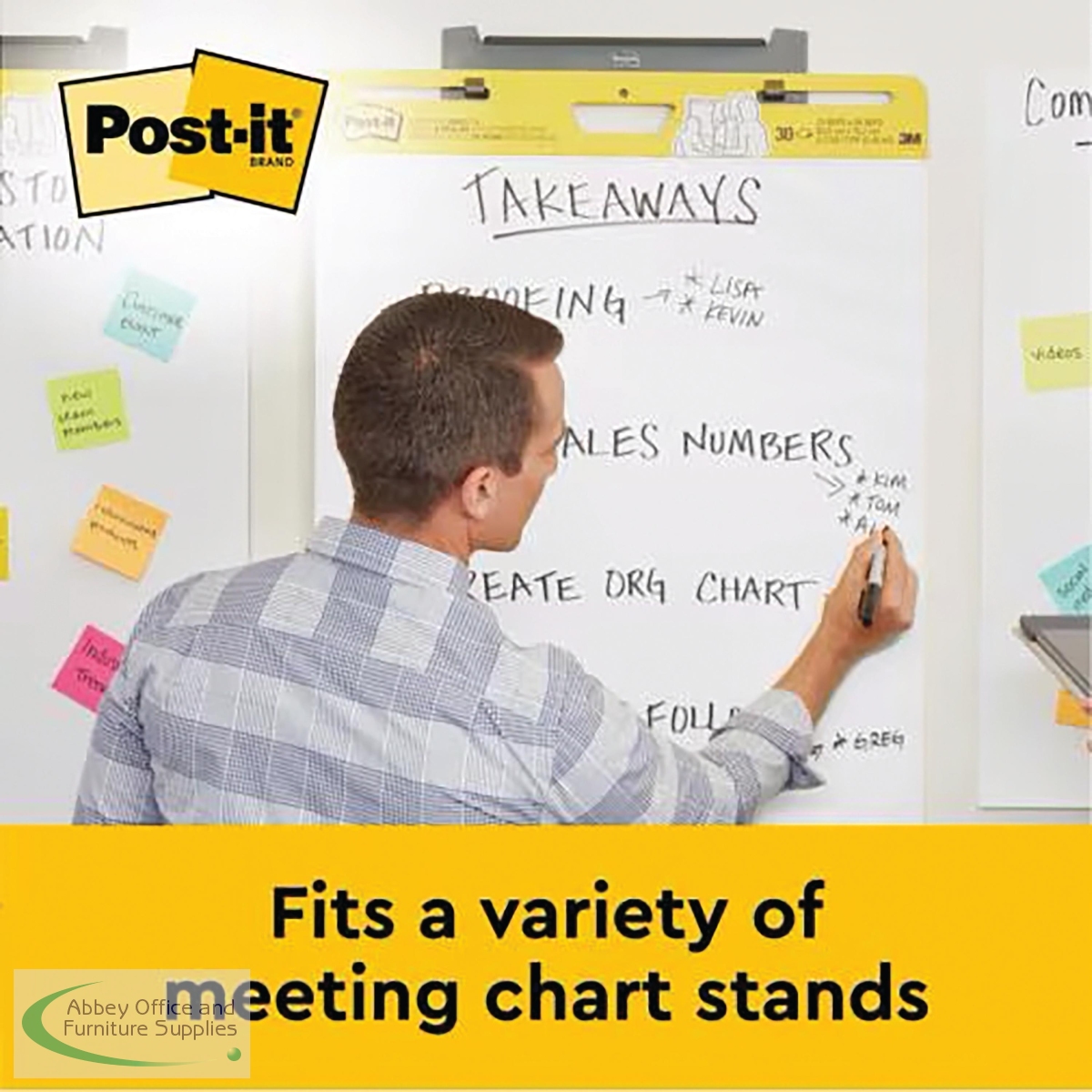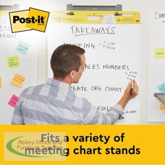 This Post-it bundle features Super Sticky Meeting Charts which are plain white flipcharts, designed to support meetings and presentations. With an adhesive backing, the sheets stick securely to most wall surfaces and can be cleanly removed and repositioned. Simply think, write and keep your work visible. The high-quality paper has bleed-through resistance, and the charts feature universal slots which fit most easel or flipchart stands. They can also be hung on a wall using Post-it Super Sticky Wall Easel. Supplied in a bundle pack of 2 meeting charts plus 1 free (3 meeting charts in total).