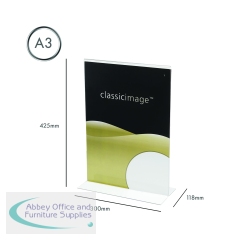 The stand-up sign holder is ideal for table top displays, receptions, restaurants and more. This sign holder provides maximum visibility whilst the smart design loads from the bottom, giving the top a smooth and seamless sealed look.