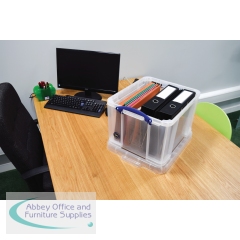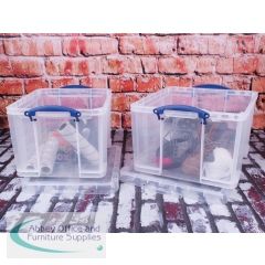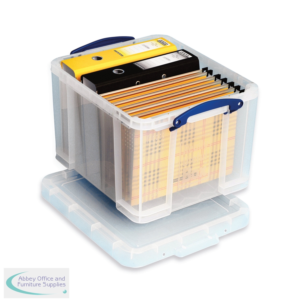 Save time and space with a Really Useful 35 litre storage box. Solid, strong and stackable with a lid that locks securely in to place, it comes as part of a fully interchangeable range. A clear polypropylene container which lets you see easily what's stashed inside. Designed to be versatile, it is a great way to keep odds and ends neatly stored or could even serve as a low-cost filing solution.