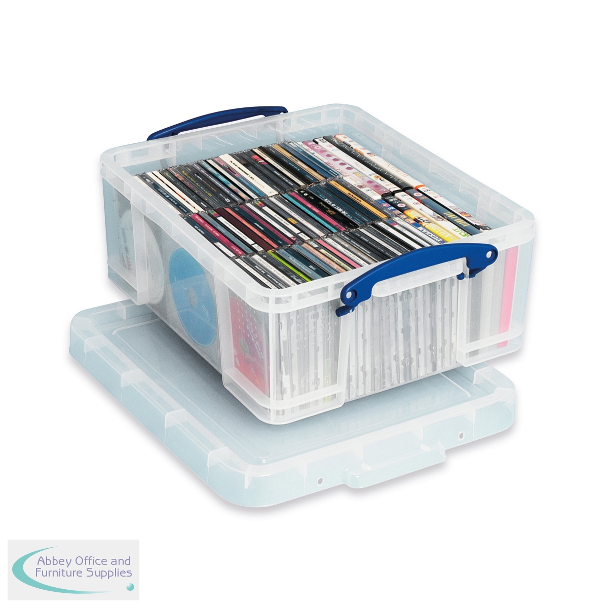 RUP80155 - Really Useful 18L Plastic Storage Box with Lid L480xW390xD200mm CD/DVDs Clear EBCCD