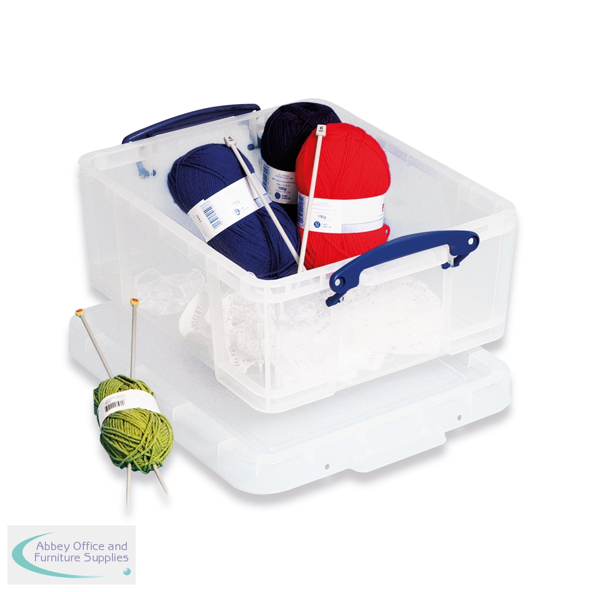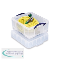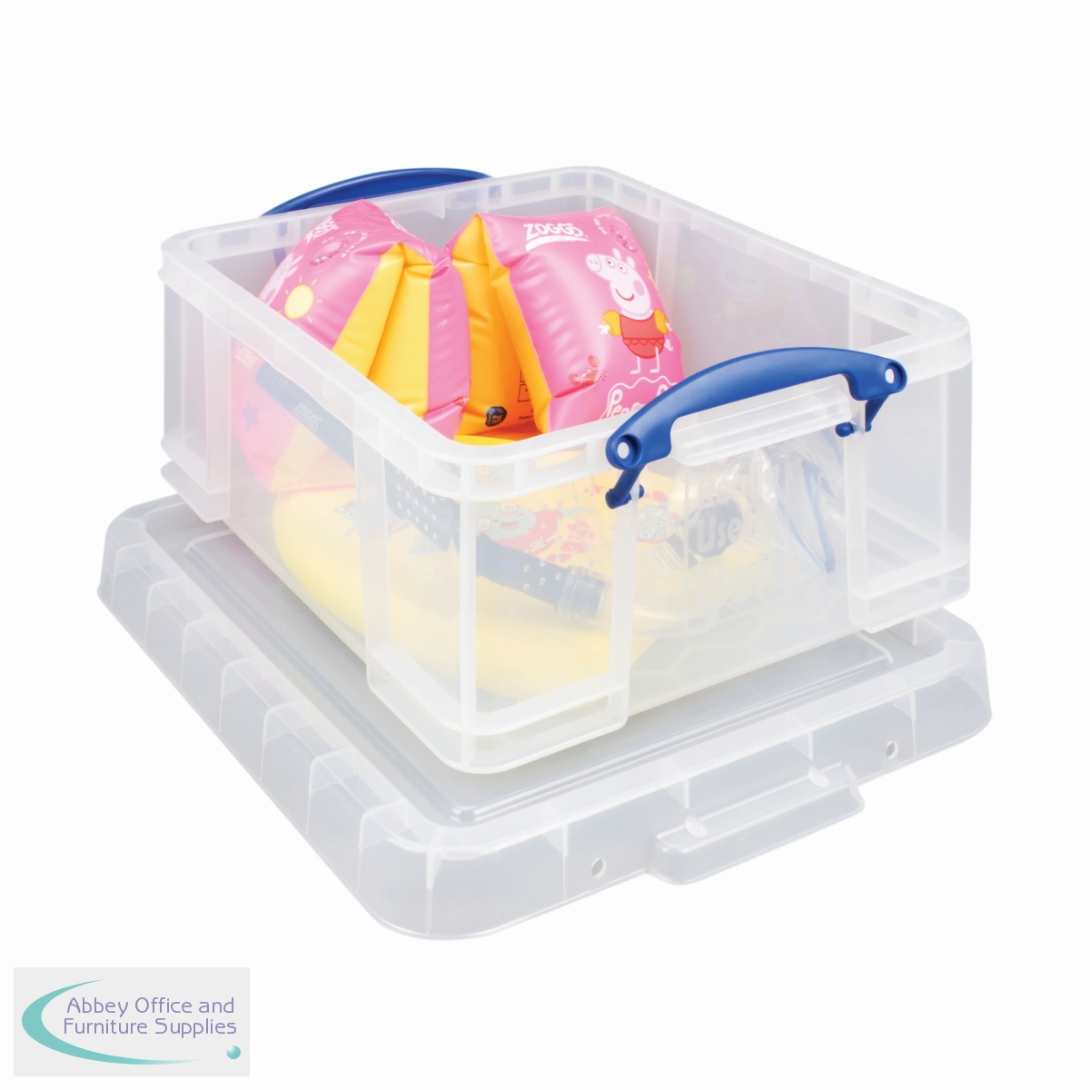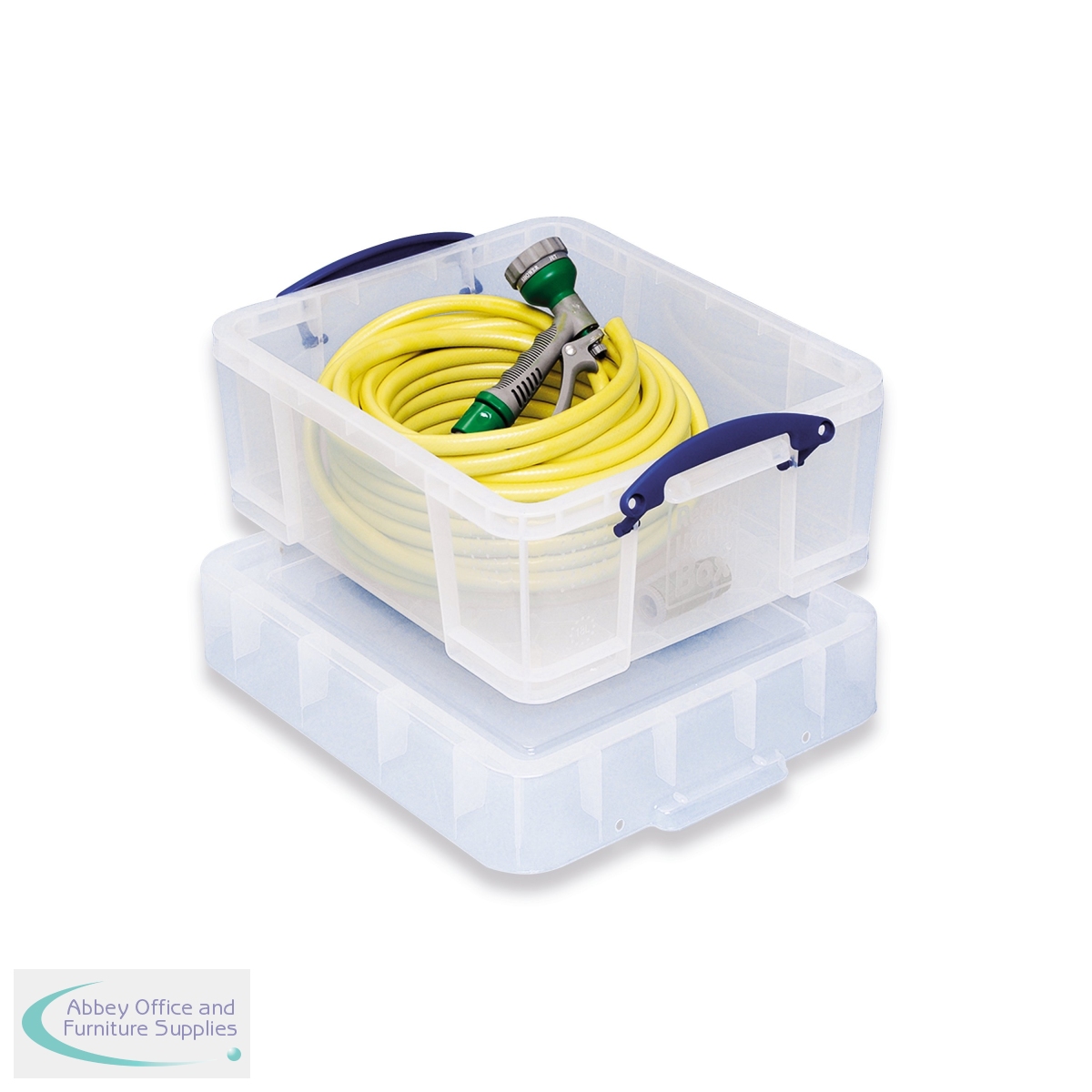 Keep files and documents neatly stored away in this 18 Litre Plastic Storage Box from Really Useful. With 18L of capacity, the interior provides room for 93 CDs or 44 DVDs. The clear sides let you see contents at-a-glance for efficient organisation, and provide sturdy protection from the elements and vermin. The design is stackable as well for space-saving storage, and features handles for easy carrying.