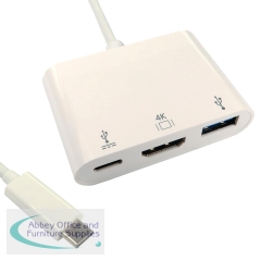 The USB3C-HDMIUSB-WPD4K is a USB-C to USB 3.0, HDMI and USB-C charging port hub. It allows you to connect a USB device to the host computer or another hub. The HDMI port allows you to connect an extra monitor so that you can watch videos or slideshows on the big screen. It supports all USB-C and Thunderbolt host ports that support DP Alt Mode, including DP1.4 and DP1.2.