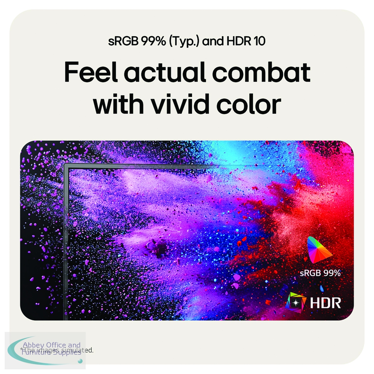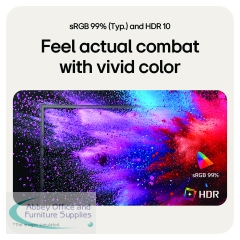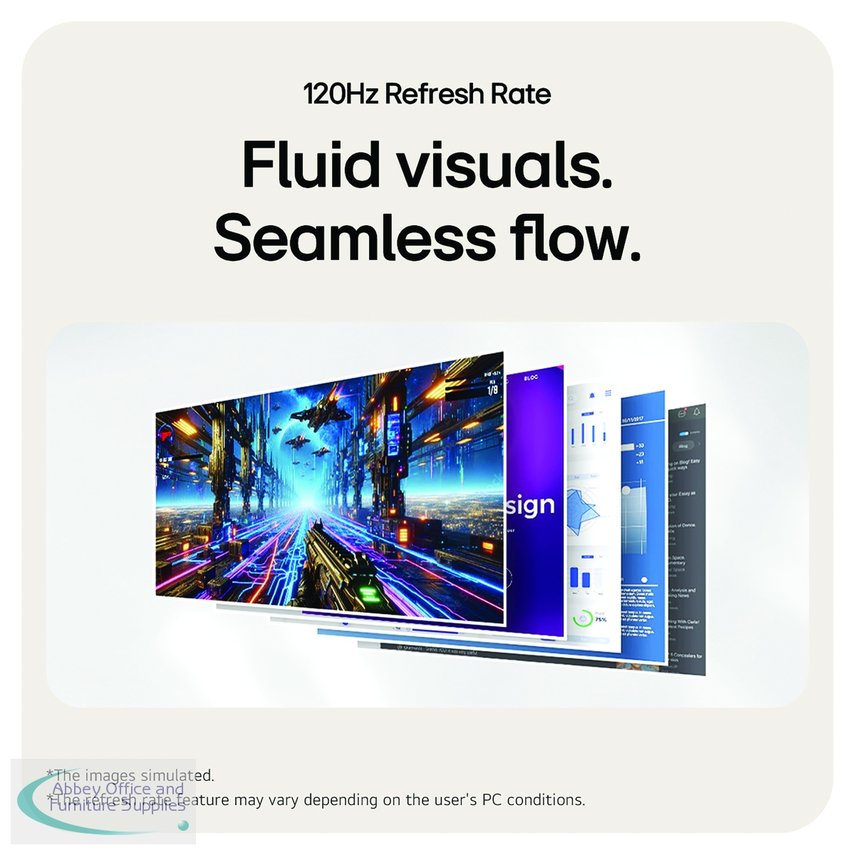 This LG FHD (1920x1080) screen delivers clear visuals with an sRGB 99% (Typ.) colour gamut and a 1500R curvature, enhancing work productivity. he ultra-slim bezels and 3-side virtually borderless design creates a clean, modern look that keeps your focus where it belongs-on the screen. The sleek stand and base adds a floating feel, perfect for dual setups or a clutter-free workspace. With a fast 120Hz refresh rate, you'll experience smoother frame transitions. Whether you're working or gaming, enjoy more fluid visuals with less screen stutter and motion blur.