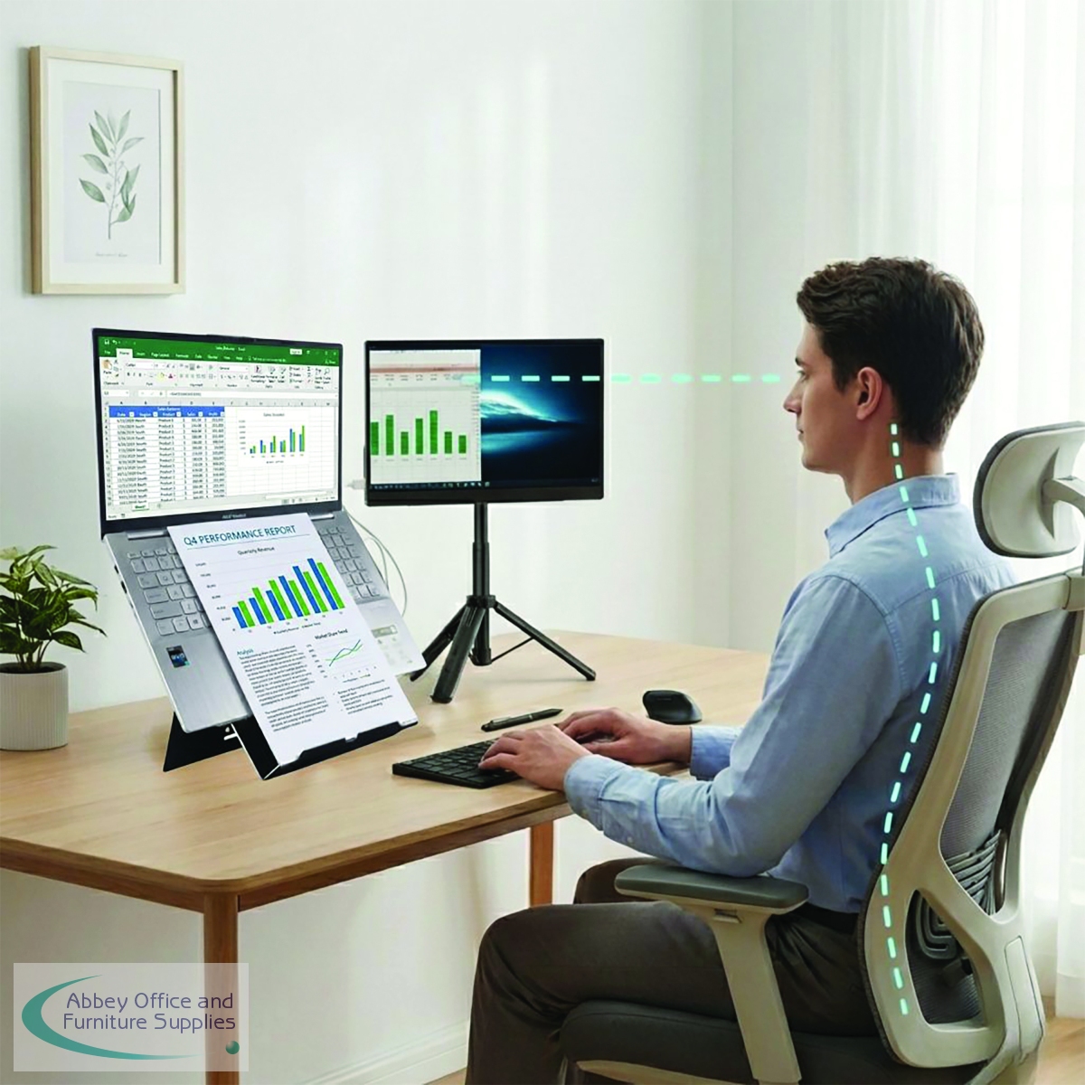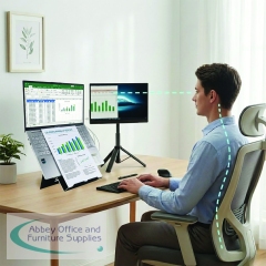 The Standivarius X-Stand is an ergonomic stand designed to elevate your portable monitor or tablet for business comfort and pain-free work. This stand fully complies with European and UK ergonomic regulations, ensuring proper ergonomic posture by raising the device to eye level. The flexible ball head allows for 360 rotation, providing versatile angle adjustments for the best viewing experience. Made from durable aluminum alloy with a stable 3-leg design and non-slip rubber pads, the X-Stand is both sturdy and reliable. A versatile ergonomic accessory created with the user in mind, you can instantly setup and pack away, it is lightweight and foldable for true mobility as well as being easily adjustable for various height preferences.