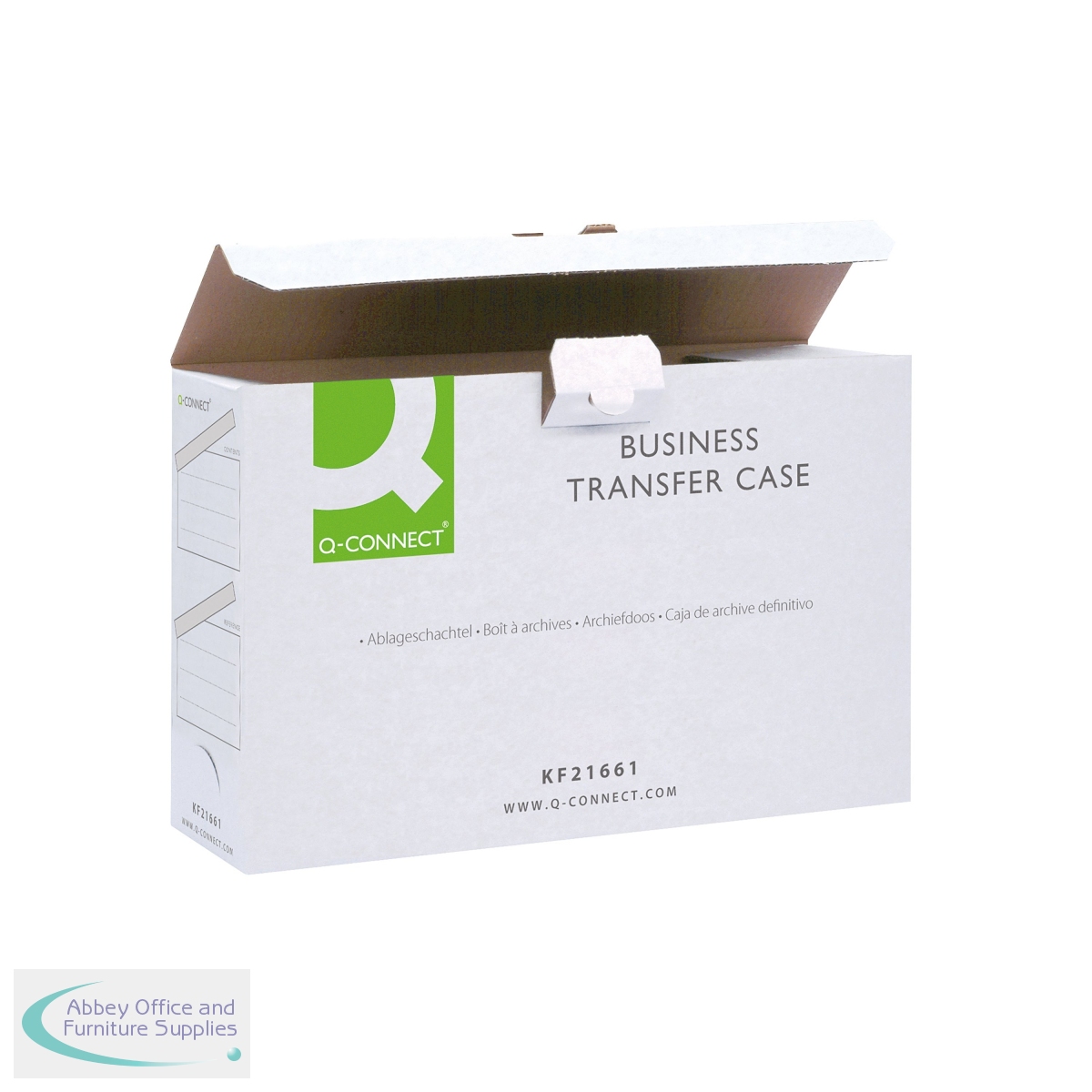 Designed for long term storage and archiving of A4 and foolscap documents, this Q-Connect transfer case features a flip top lid for security, a finger hole for easy retrieval from a shelf and a large label area for easy identification of contents. Three of these transfer cases will fit neatly into one Q-Connect business storage box for space saving storage. This pack contains 10 white transfer cases measuring W98 x D367 x H235mm (internal).