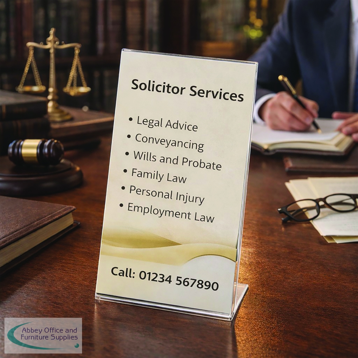 AA10433 - Announce Slanted Sign Holder 1/3 A4/DL Portrait AA10433