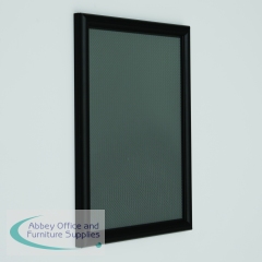 A very neat narrow 15mm profile snap frame for smaller sizes. It is so easy to clip open the aluminium frame to access your poster or graphic image which is protected by an anti-glare plastic cover sheet. Available in black powder coat finish.