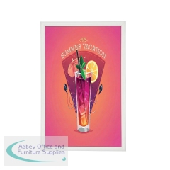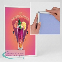 A very neat narrow 15mm profile snap frame for smaller sizes. It is so easy to clip open the aluminium frame to access your poster or graphic image which is protected by an anti-glare plastic cover sheet. Available in white powdercoat finish.