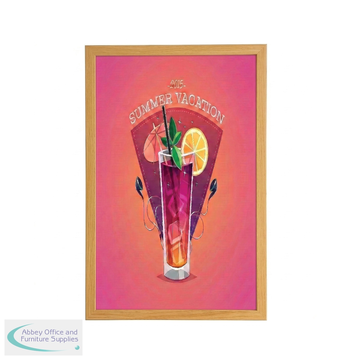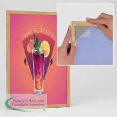 A very neat narrow 15mm profile snap frame for smaller sizes. It is so easy to clip open the aluminium frame to access your poster or graphic image which is protected by an anti-glare plastic cover sheet. Available in pine wood effect finish.