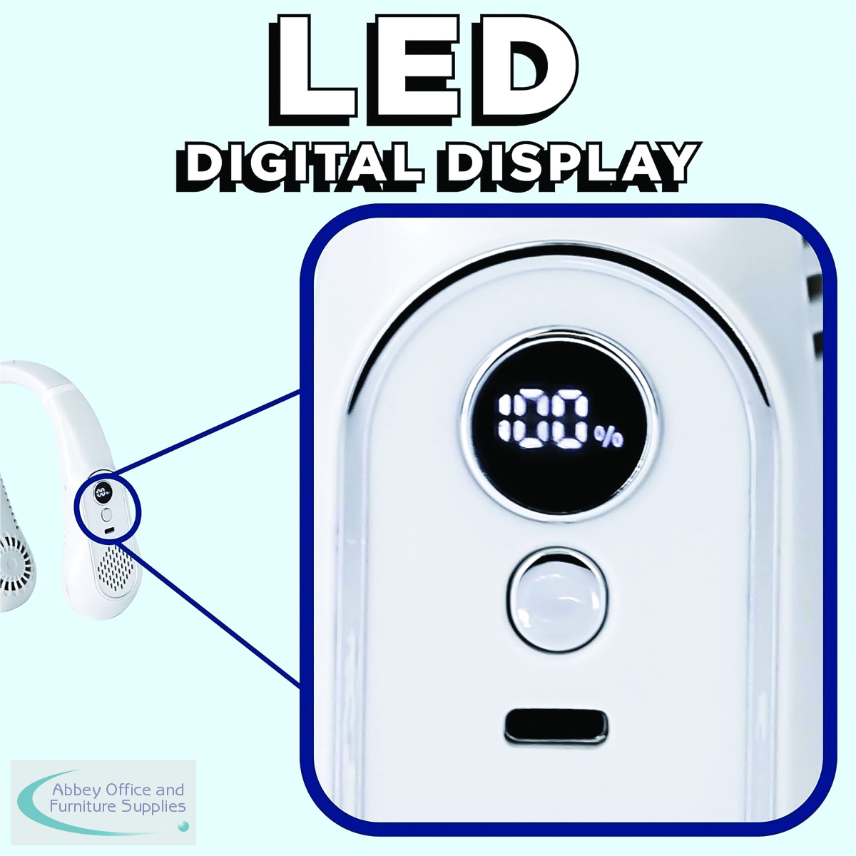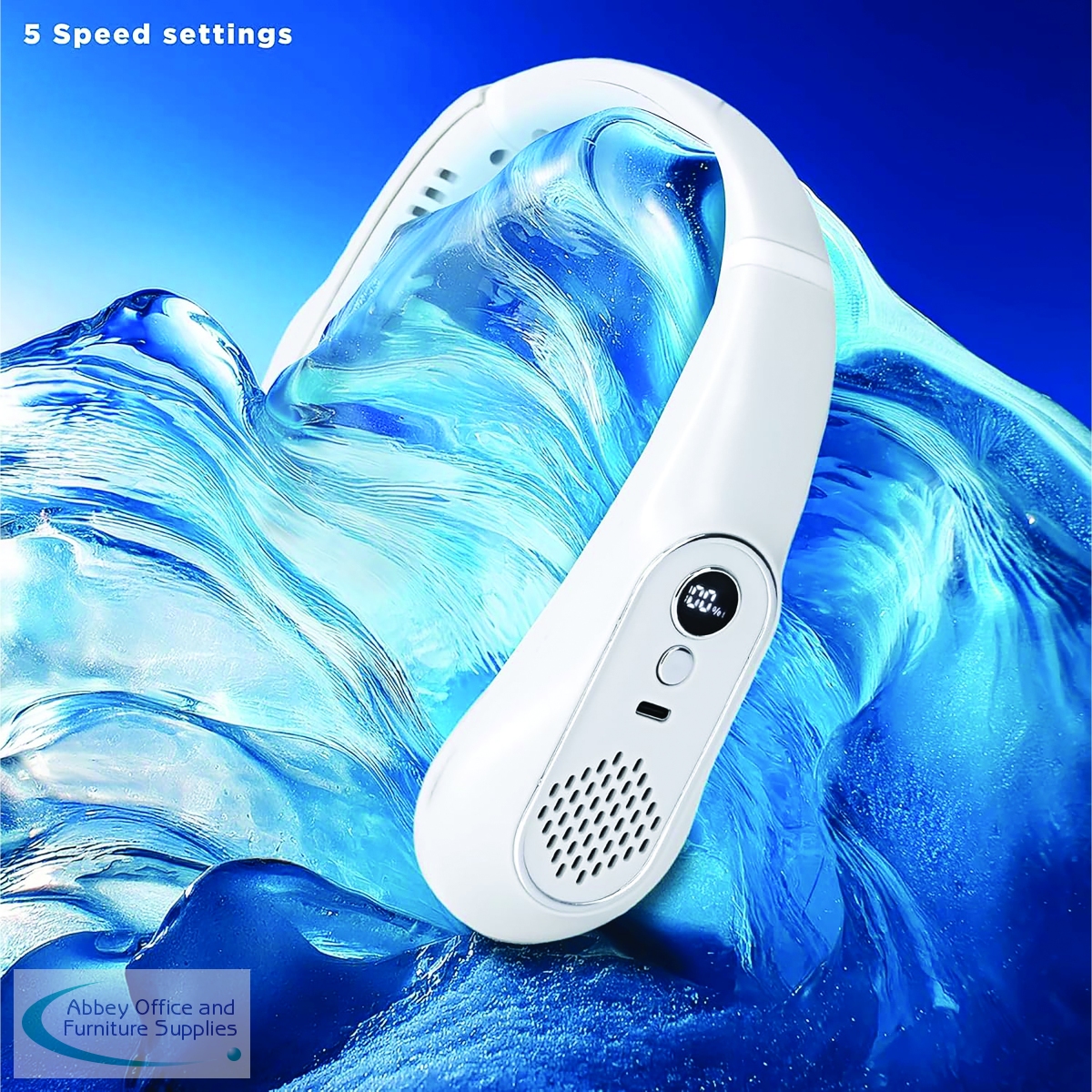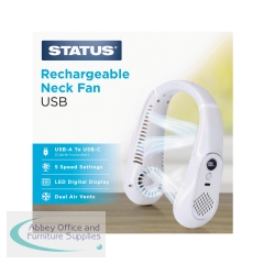 Perfect for cooling you down, this neck fan from Status features 5 speed settings depending on how fast or slow you need the dual air vents to flow. Chargeable from USB-A to USB-C (cable included), this USB neck fan is simple to use with an LED digital display panel. Supplied in white.