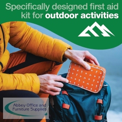 For those who enjoy adventure and being outside, hiking and camping are great ways to spend their free time, however there are dangers to both activities depending on the situation. The Safety First Aid Group's Hiking and Camping First Aid Kit provides the essential supplies necessary for treating common injuries while exploring the great outdoors. The main difference between a general first aid kit and this kit designed for camping or hiking are the contents supplied. For example, this camping first aid kit includes sterile moist wipes, dressings and plasters as well as supplies not typically found in a general kit - such as a tick remover, an instant cold pack and a plastic whistle. This reusable zippered first aid case is designed to keep contents organised, secure, and easily accessible during any outdoor adventure. Inside, two internal mesh pockets help keep supplies in place, making it simple to find what you need fast. With its bright orange background and white decals of a first aid cross and a hiking silhouette, this kit is instantly recognisable as a hiking and walking first aid kit, ideal for use on trails, nature walks, or camping trips. The case is made from a durable, water-resistant material that’s easy to wipe clean, making it perfect for outdoor conditions and unpredictable weather. A removable cardboard sleeve provides clear, at-a-glance visibility of the kit’s contents, so users know exactly what’s inside before they need it - crucial in any emergency situation.